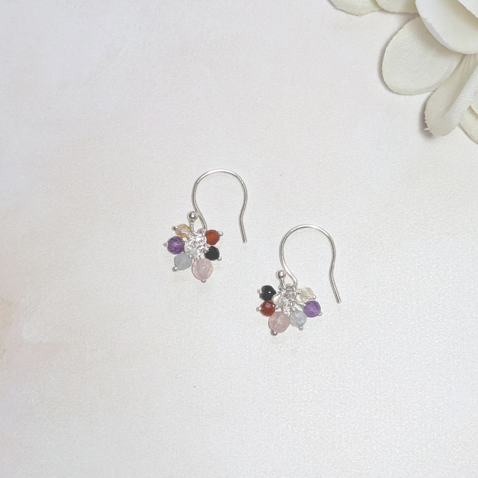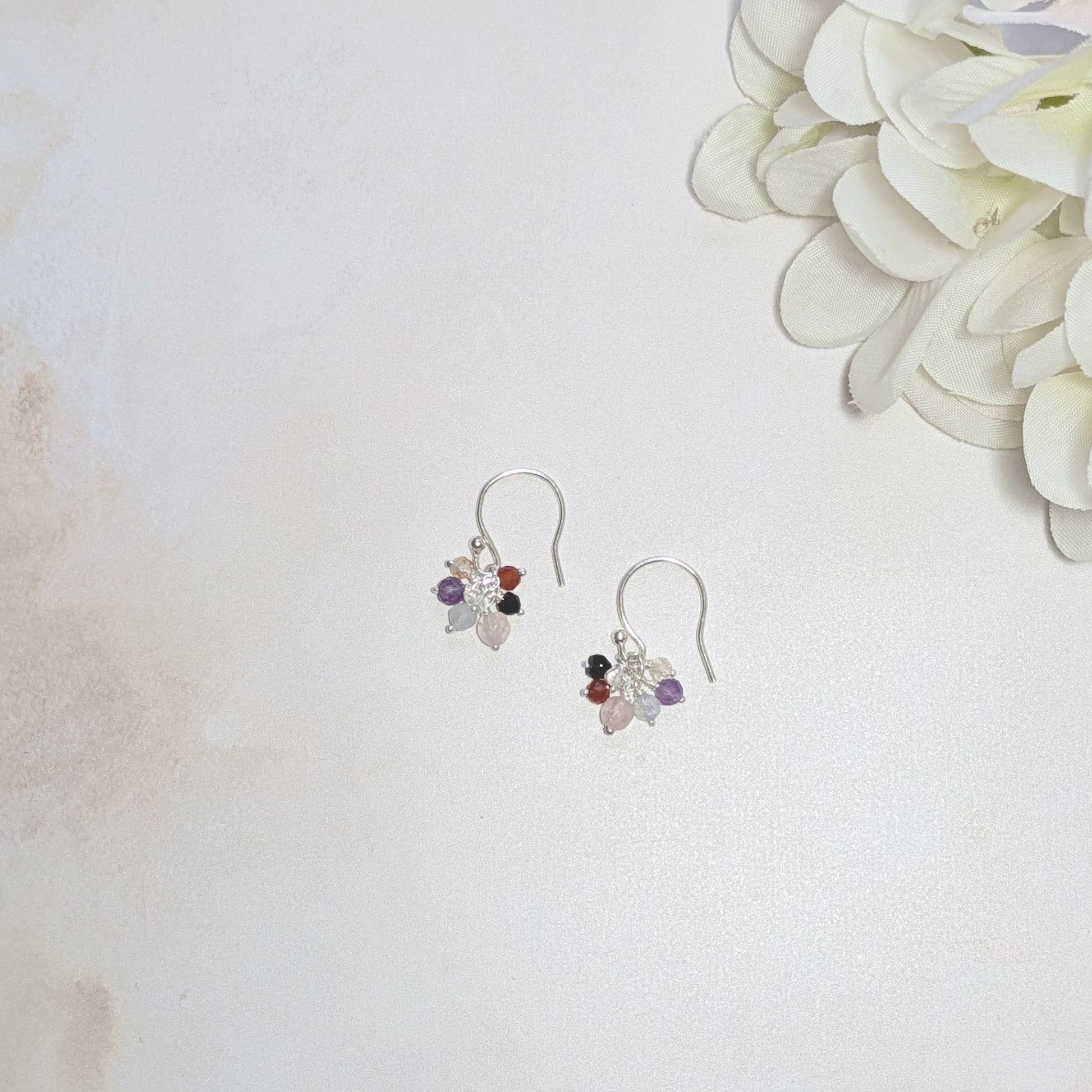 Find harmony with our Seven Chakra Charm Earrings, meaningfully handmade in our studio. These exquisite earrings feature clusters of seven natural, ethically sourced gemstone charms suspended from Sterling Silver ear hooks, designed to help you balance mind, body, and spirit.