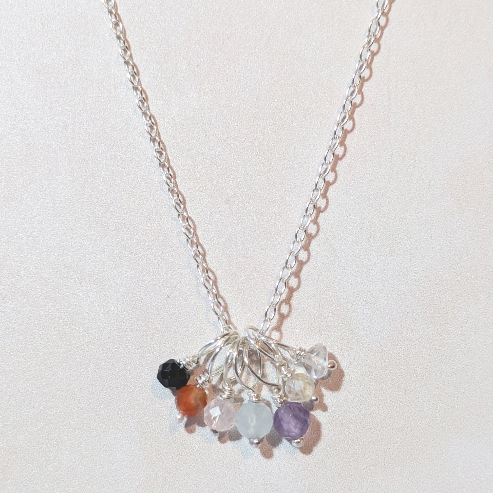 Find your balance with our Seven Chakra Charm Necklace, meaningfully handmade in our studio. This delicate piece features seven natural, ethically sourced gemstone charms suspended on a fine chain, designed to help you find harmony of mind, body, and spirit.